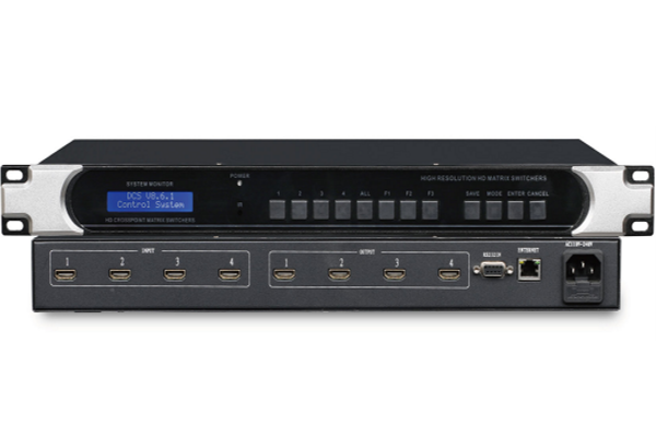 HDMI4系列HDMI矩陣切換器型號(hào)有HDMI0404,分別是一款將輸入4路HDMI音視頻信號(hào)輸入, 4路HDMI音視頻信號(hào)輸出的矩陣切換器??蓪⑤斎氲?路HDMI音視頻信號(hào)同步快速快速切換到任一路或多路通道輸出。采用4.5 Gbps的高帶寬切換芯片,可兼容支持480p,720p,1080i,1080p分辨率,可在此信號(hào)模式下使信號(hào)傳輸衰減降至最低,提供良好的高清晰表現(xiàn)表現(xiàn),保證了圖像信號(hào)能高保真地輸出。具有RS-232通訊接口和網(wǎng)絡(luò)接口,方便與電腦、遙控系統(tǒng)或各種遠(yuǎn)端控制設(shè)備連接應(yīng)用。