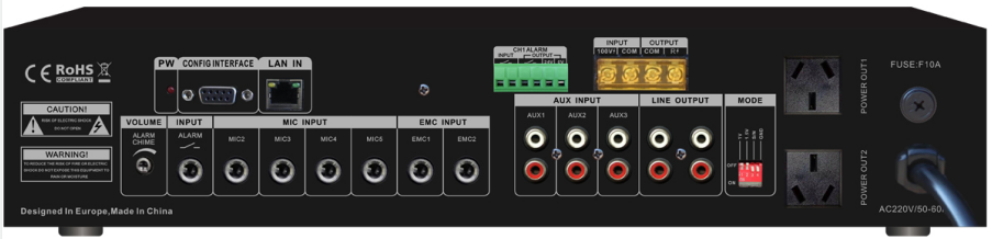 輸出方式:4~16Ω定阻輸出、70V/100V定壓輸出